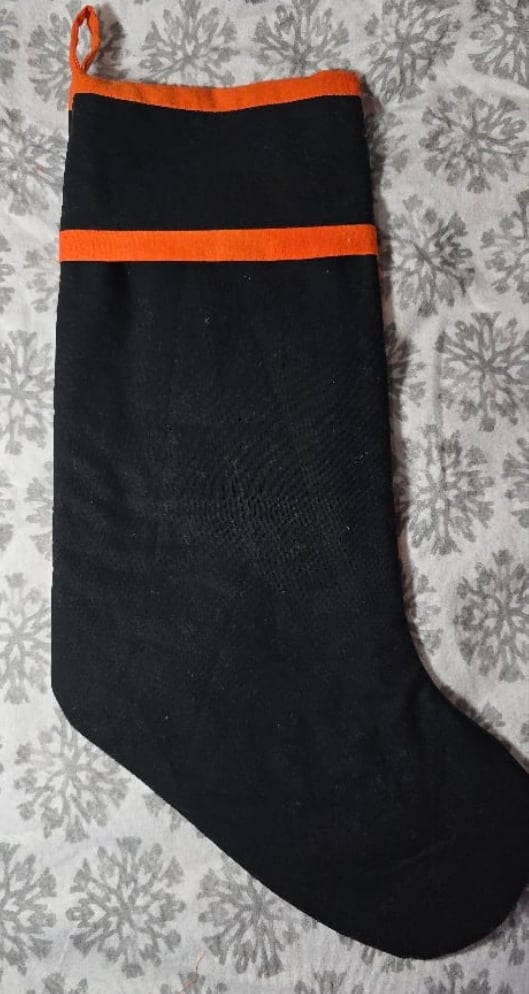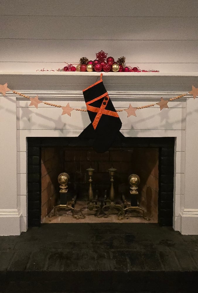Handmade Bakugo inspired stocking, 100% cotton fabric, and batting, two plastic buttons.