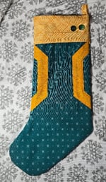 Handmade Deku inspired stocking, 100% cotton fabric, and batting, two buttons.